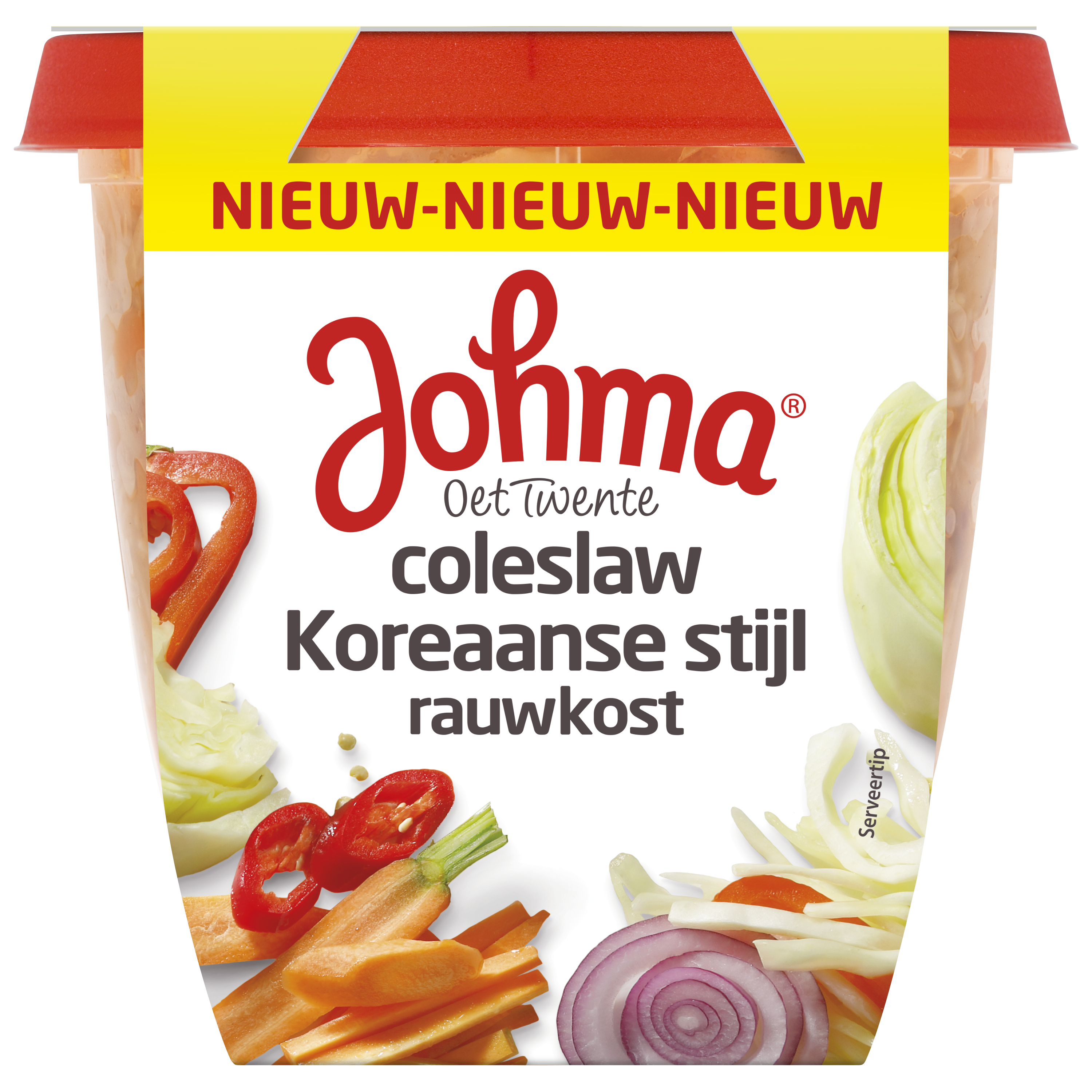 Ingrediënten: 52% witte kool, 11% wortel, water, 6% paprika, 6% rode ui, plantaardige oliën (koolzaad, knoflookolie, zonnebloem), suiker, natuurazijn, gemodificeerd zetmeel, rode peper, specerijen (mosterd), zout, knoflook, tomatenpuree, uipoeder, conserveermiddelen (kaliumsorbaat, natriumbenzoaat), ui, antioxidant (ascorbinezuur), citroensapconcentraat, invertsuiker, sojabonenpoeder, tarwemeel, verdikkingsmiddel (xanthaangom), melasse, natuurlijk aroma, voedingszuur (citroenzuur), tarwebloem, karamelsuiker. Kan schaaldieren, ei, vis, pinda's, melk, noten (amandel, cashewnoot, pistachenoot, walnoot) en selderij bevatten.